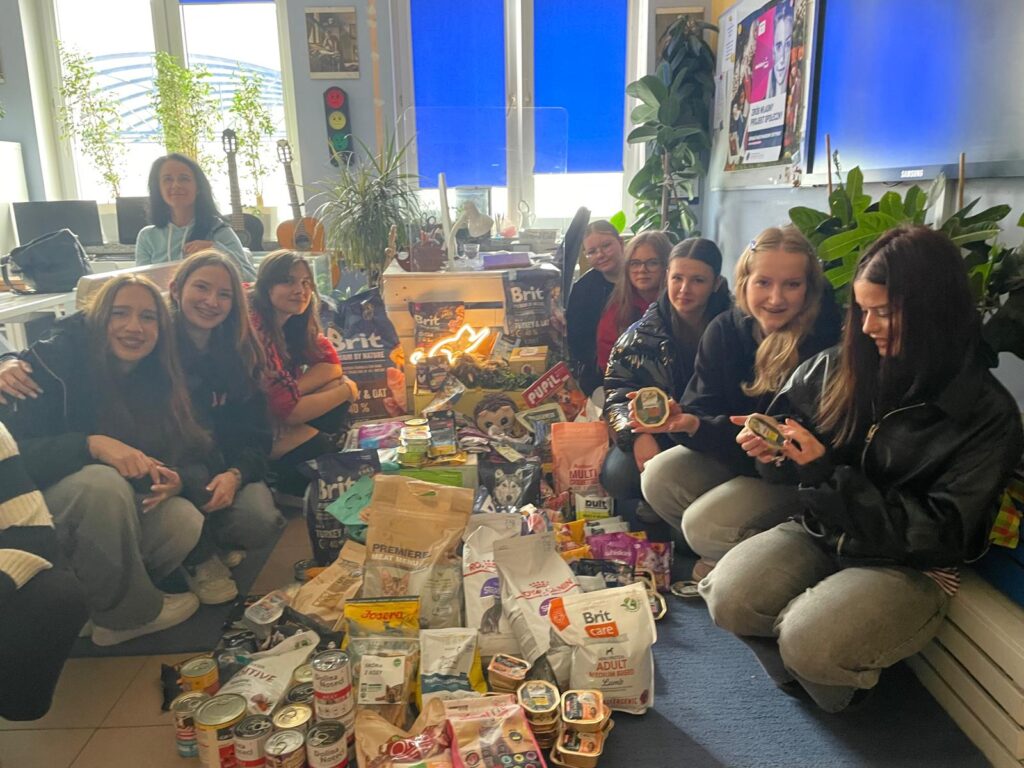 Uczniowie, pod opieką pani Alicji Maksymiuk oraz pani Jolanty Kłossowskiej przekazali na rzecz schroniska zebrane wcześniej dary: suchą i mokrą karmę oraz inne potrzebne artykuły.