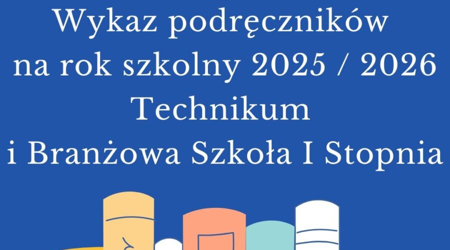 Wykaz podręczników na rok szkolny 2025 / 2026 Wykaz podręczników do Szkoły Branżowej I Stopnia Wykaz podręczników do Technikum UWAGA!Zakup podręczników do przedmiotów zawodowych należy skonsultować z nauczycielami przedmiotów zawodowych.Czytaj dalej