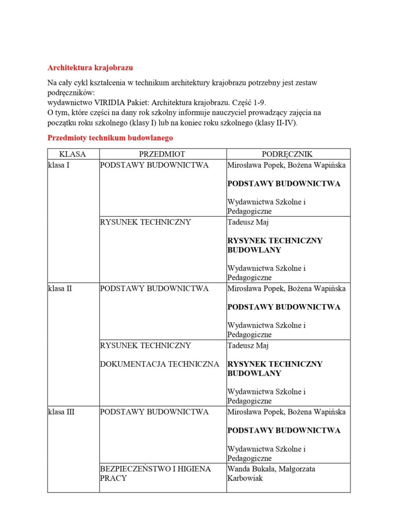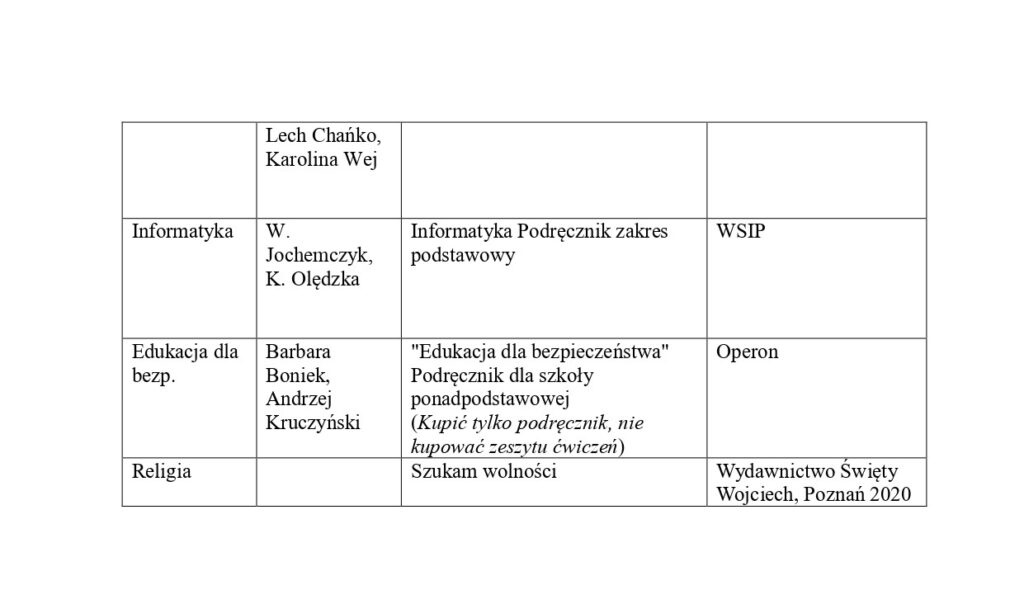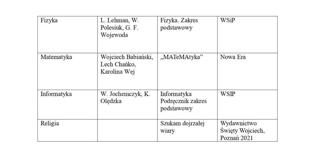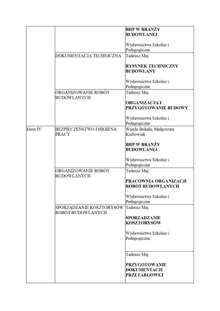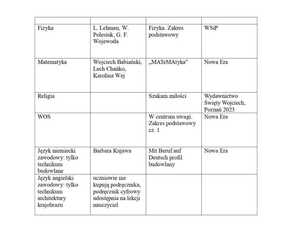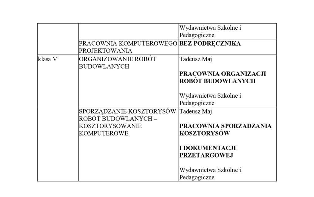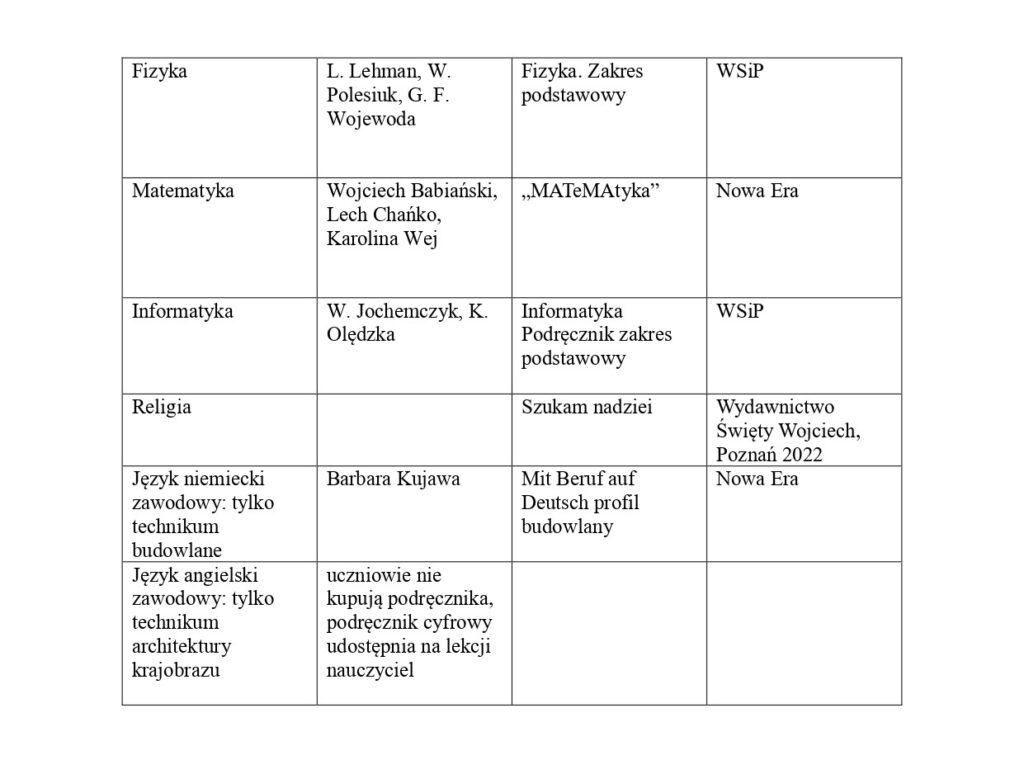 Zakup podręczników do przedmiotów zawodowych należy skonsultować z nauczycielami przedmiotów zawodowych.