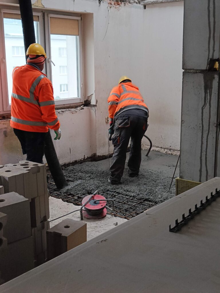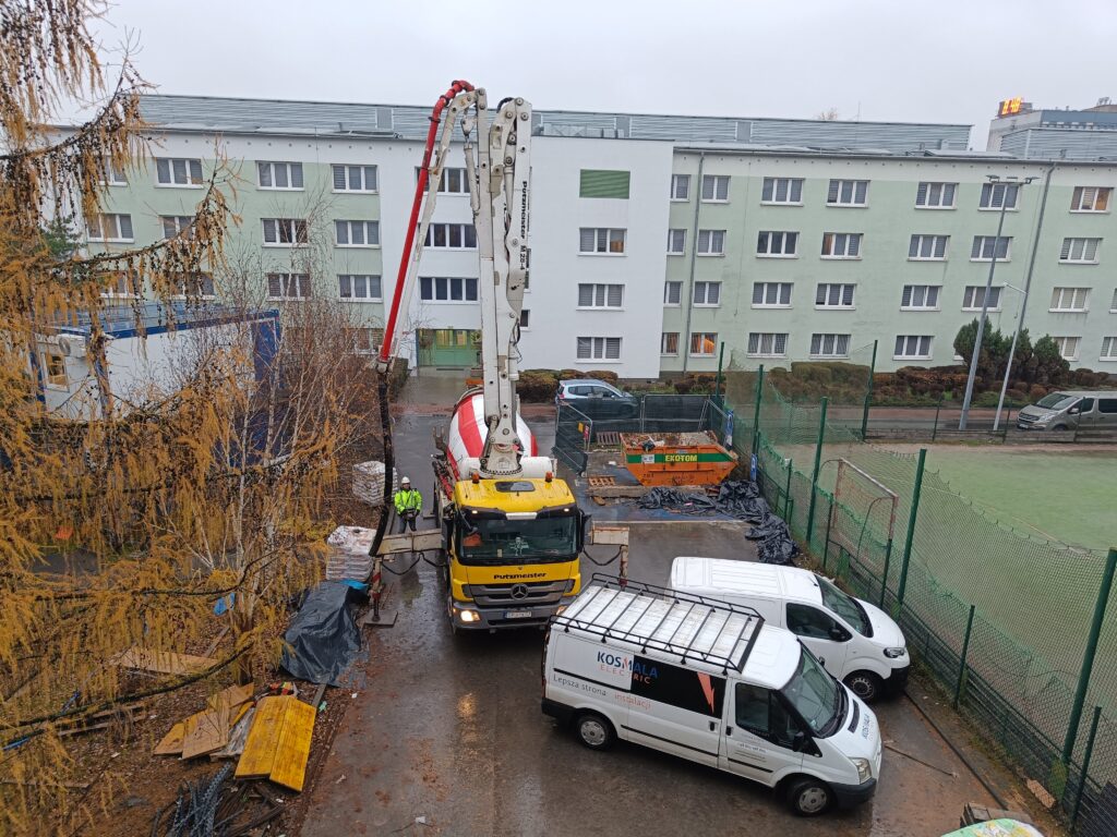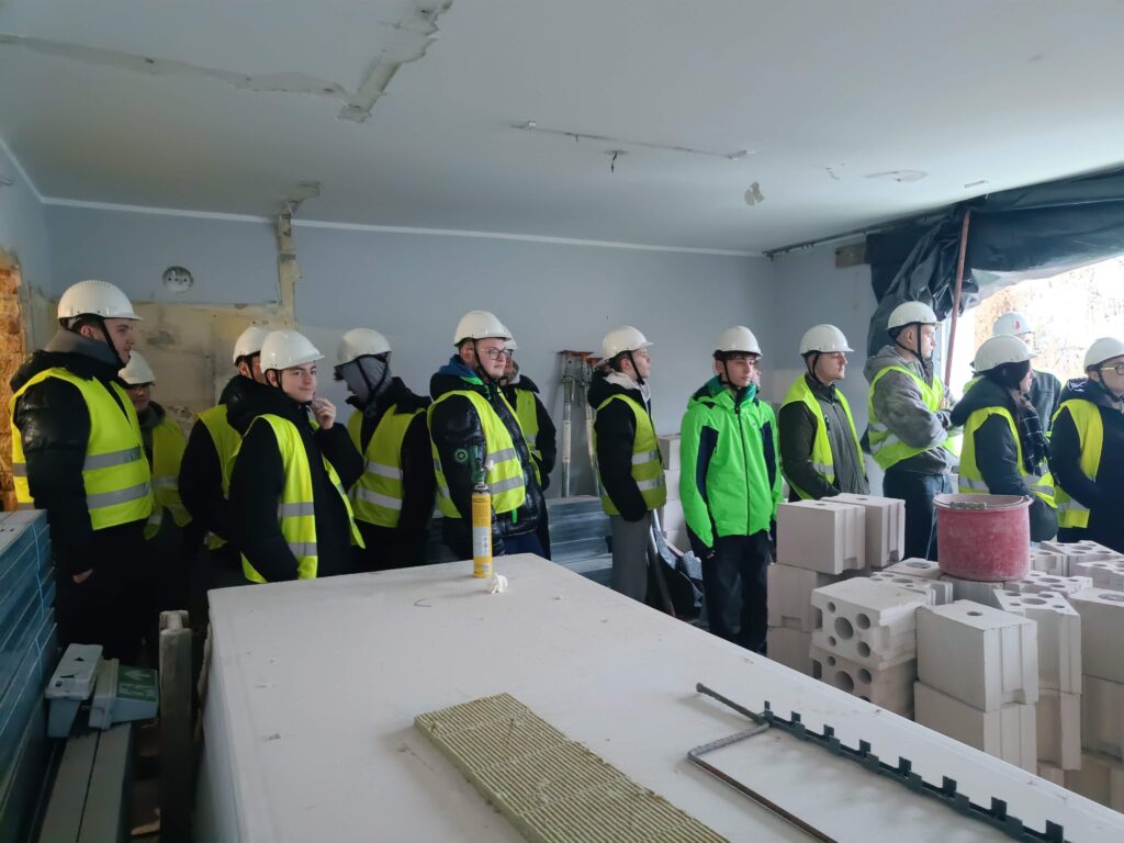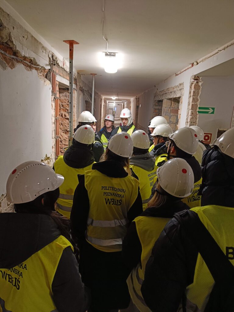 Dodatkową atrakcją wizyty była wycieczka na budowę – przebudowę domu studenckiego. Uczniowie mieli okazję obserwować betonowanie fragmentu stropu w istniejącym budynku oraz dowiedzieć się od kierownika budowy o specyfice prac przy modernizacji obiektów.
